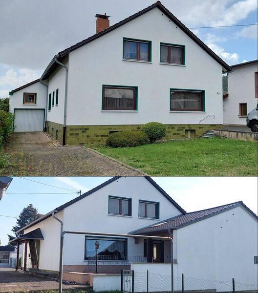 Dieses großzügige, schöne und gemütliche 1-2 Familienhaus bietet Ihnen ein wunderschönes Wohnambiente. Die Wohnlage ist am Stadtrand/Feldkirchen im schönen Weinbaugebiet von Neuwied. Das geräumige Haus wurde 1967 erbaut, ist 1989 ausgebaut worden (2. Wohnung mit Bad im OG), renoviert und modernisiert worden. Die Wohnräume sind mit kleinem Aufwand sofortbewohnbar. Das Haus ist sehr wohnlich, gemütlich und großzügig. Der Eingangsbereich mit großer Tür ist großzügig mit viel Platz und großer Garderobe. Die Küche befindet sich zum Garten raus und von hier aus gelangen Sie auch auf die große Terrasse mit Teilüberdachung. Das Wohnzimmer ist geräumig und gemütlich. Das Schlafzimmer, ein Kinderzimmer/Büro befinden sich ebenfalls dort. Das Badezimmer ist vollständig neu renoviert und hat eine große, begehbare Dusche (barrierefrei). Im OG befinden sich 2 Zimmer, eine Küche, ein Schlafzimmer und ein modernes Bad mit Einbauschränken. Im Untergeschoß gibt es zwei Hauswirtschaftsräume/Vorratsraum, eine Waschküche mit Dusche, in der Waschmaschine, Trockner und diverse Geräte/Vorräte Platz finden. Hier befindet sich auch der Heizraum. Ein großer Werkstattraum befindet sich noch im Keller, auch von hier aus gelangen Sie über eine Treppe zur Terrasse und in den Garten. In der großen Garage, links vom Haus, mit separater Einfahrt und Tor, ist eine zweckdienliche Werkstatt vorhanden, mit einer großen Grube mit stabilem Aufbau und Licht für Reparaturarbeiten am Auto. Über der Garage befindet sich ein großer Lagerraum mit Tageslicht. Rechts neben dem Haus liegen neben der großen Einfahrt nochmals Werkstatträume (oder 2 Garagen). Über den Werkstatträumen ein weiterer Lagerraum. Vor den Werkstatträumen befinden sich 2 neu erbaute hochwertige Garagen. In beiden Einfahrten, rechts und links vom Haus ist Platz für 6 Autostellplätze. Hinter den Garagen befindet sich noch ein großzügiger, offener Lagerraum/Schuppen. Hier ist auch Platz für die Müllbehälter. Von hier aus gelangt man in den Garten. Im hinteren Gartenbereich befindet sich auf dem Grundstück eine große, überdachte Lagermöglichkeit für Holz oder andere Dinge. Auf dem Grundstück ist evtl. eine Bebauung möglich. Das Dach ist gedämmt, Spanplatten zur Fertigstellung bereits vorhanden. Durch die schöne Lage sind viele Touristenattraktionen im Wald, in den Weinbergen und auch am Rhein in jede Richtung erreichbar. Ideal für die ganze Familie, wenn Sie gerne ruhig und in der Nähe von Ausflugszielen mit Ihren Kindern und Tieren leben möchten.